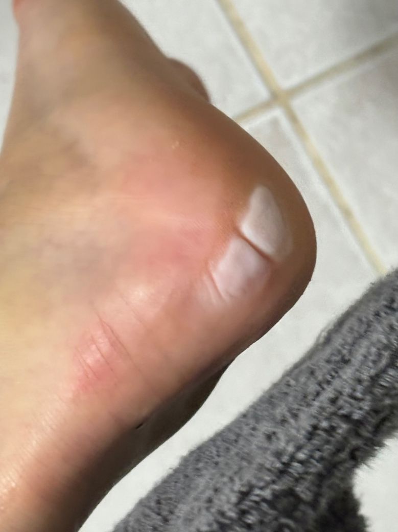 하얗고 단단한 물집은 압력성 수포나 피부괴사의 전조일 수 있어 패드로 보호하고 주기적 확인이 필요합니다. 가능하면 깁스 조정이나 부드러운 깔창 추가 등으로 압력을 분산해주는 것이 좋고 피부 변화 지속시 의료진에게 꼭 상담하세요!