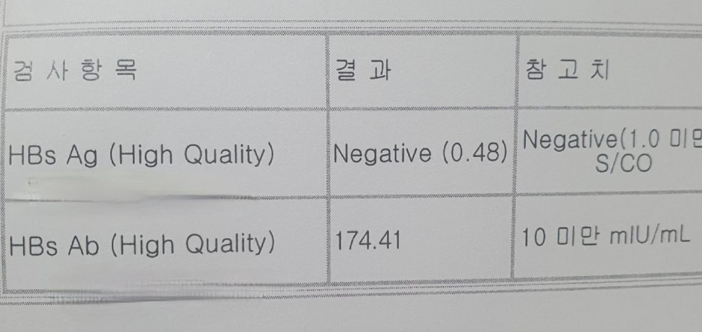 1. Ag은 항원, Ab는 항체입니다. 즉, B형 간염 항원은 없고 항체가 있으므로 B형 간염에 걸린 것은 아니고 면역력은 있다는 이야기입니다.