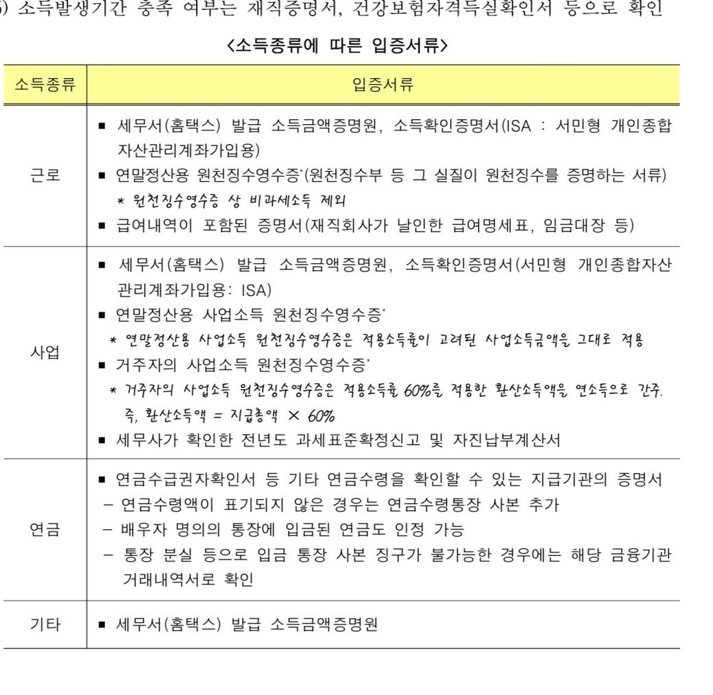 말씀하시는 사진에도 프리랜서 경우 사업소득이 있다는것을 증빙할수 있게 해당 서류를 제출하게 되어 있네요.