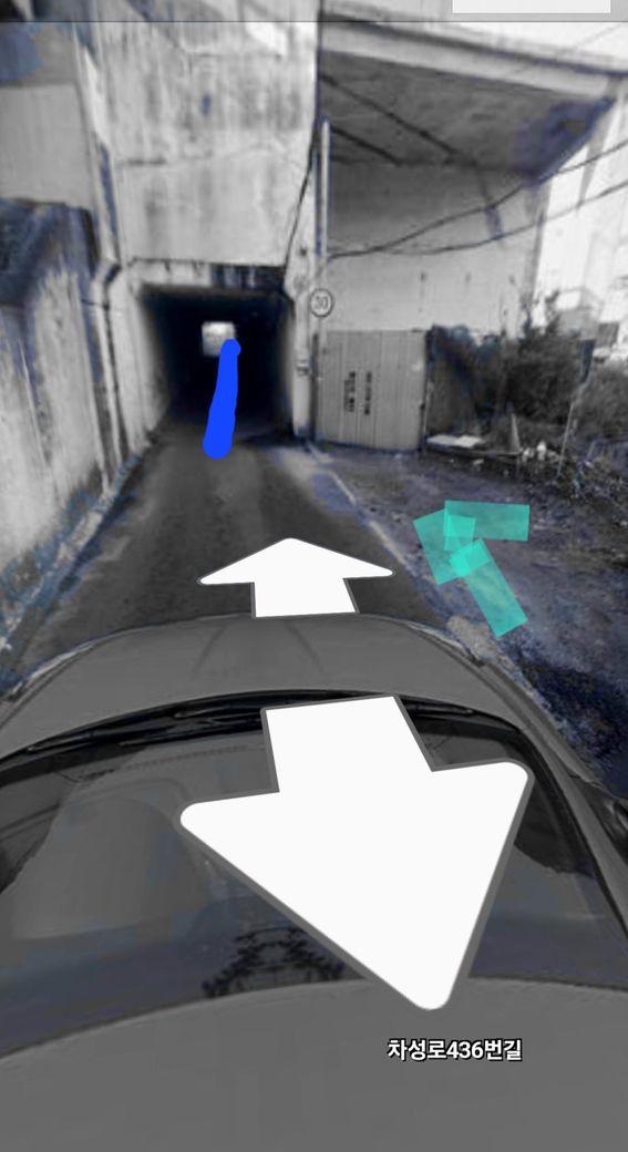 파란색이 차가 진행해온곳이고 초록색이 제가 서있던곳입니다