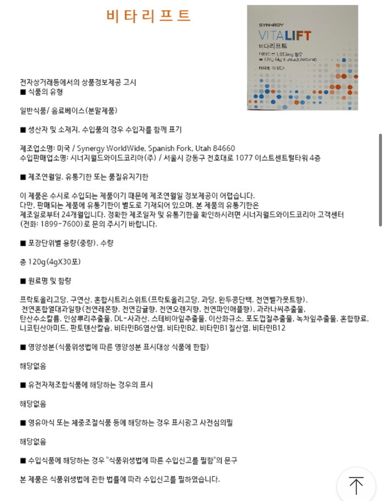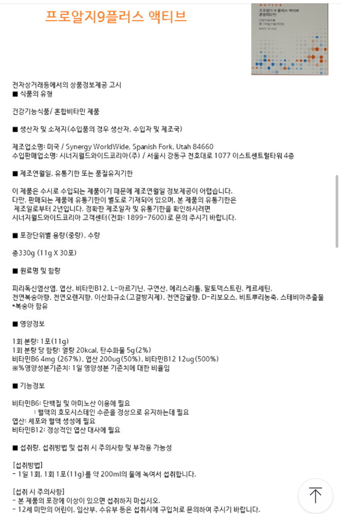 문의주신 제품의 경우 비타민B군이 함유되어있으며 에너지생성에 도움이 될수 있는 성분입니다.