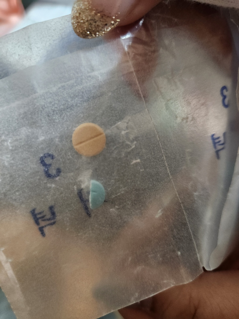 주황색 약은 환인클로나제팜정0.5mg이고 파란색약은 무슨 약인지 알 수 없어요.