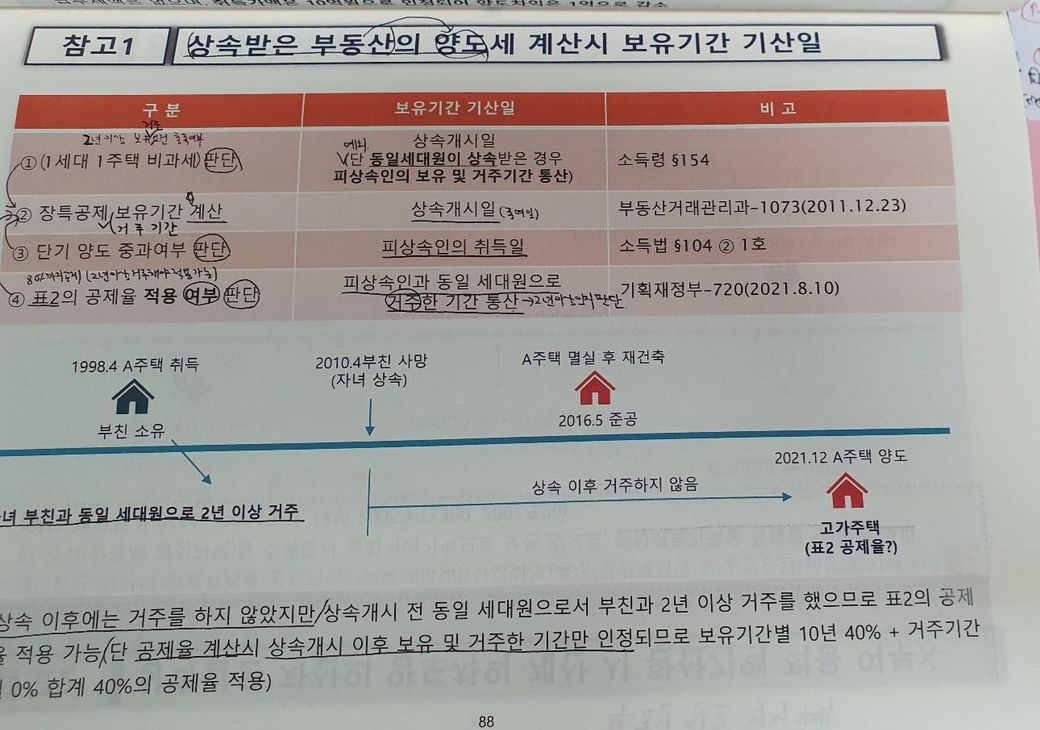 그래서 구세무서에 다시 문의했더니 상속주택은 동일 세대원으로서 2년 이상 산 기록이 있으면 장특공이 인정되기 때문에 보유 10년 채운거에 대해 40%를 적용받을 수 있다는 겁니다.