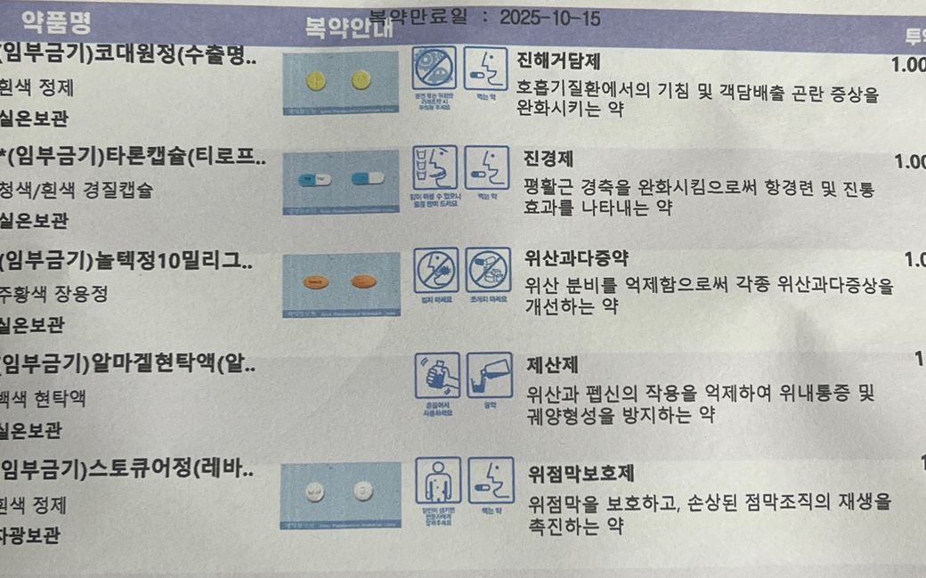 현재 복통약으로 처방받으신 약물의 유효성분과 진통제로 사용하시려는 약물의 유효성분은 서로 상호작용이 보고되지 않은 성분들이기 때문에 같이 사용하셔도 무방합니다. 안심하시고 사용해주세요 두통이 오면 목 뒤 근육이 수축해 뒷목이 아플수도 있습니다.