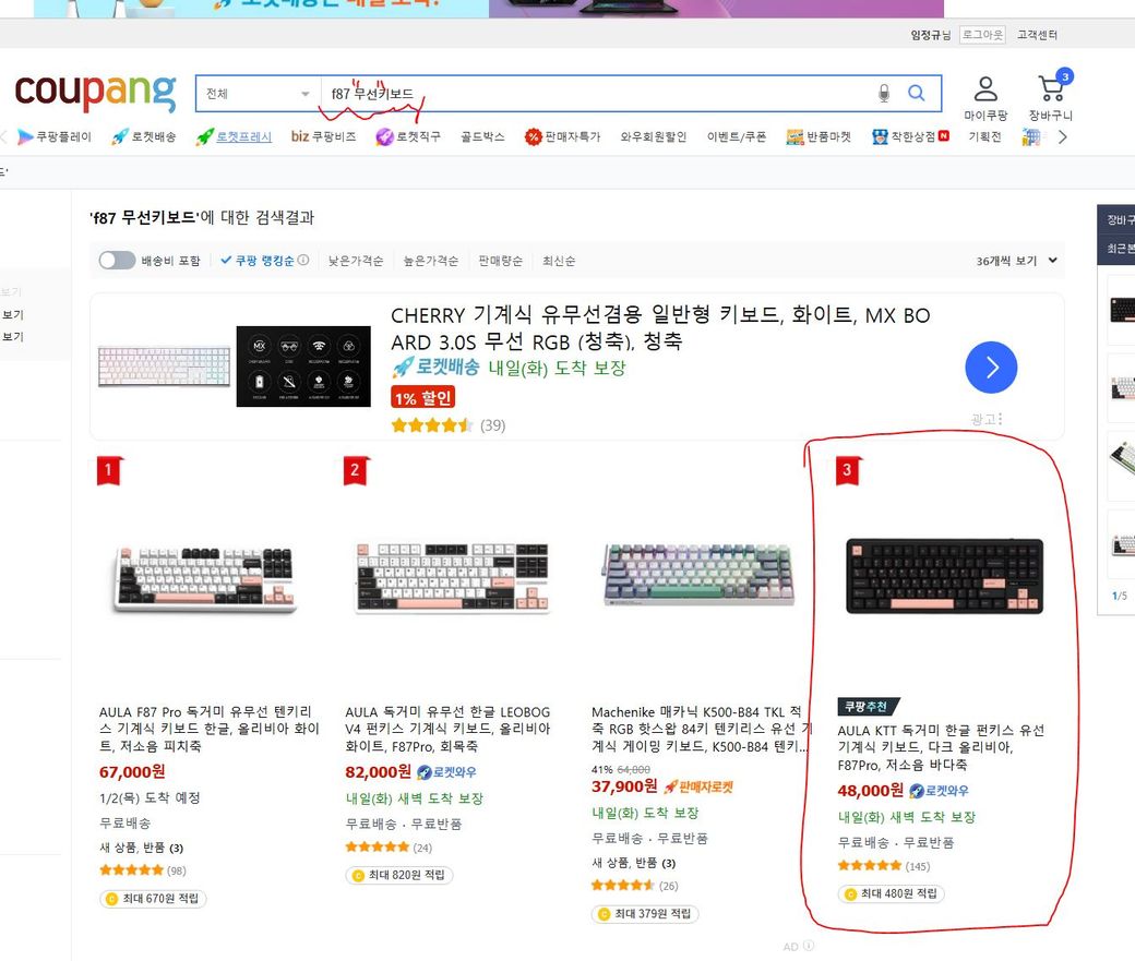 쿠팡에서 키보드를 샀는데, 무선인줄 알고 샀다가 유선키보드가 와서 당황스럽습니다.
