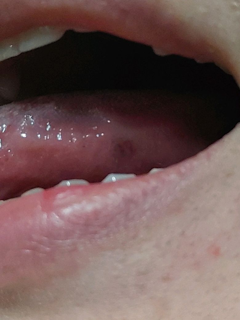 혀 옆쪽이 며칠 째 아파서 좀 전에 혹시나 하고 거울을 봤더니 검은 색 점이 있습니다..