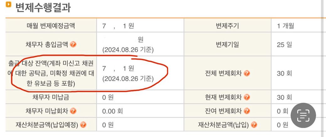 1.97회 미납이 있어 30회차가 되기 전 달인 지난 달에 모든 미납금을 변제 계좌에 입금 했습니다. 오늘 면책 신청 하러 갈 것인데 가기 전 마지막 변제 현황을 조회 해보니 계좌에 한달치 변제금이 있더라고요. 한달에 77만원 정도 내는데,8월 초에 30회차 변제금과 미납금을 함께 입금하여 출금 계좌에 230만원 가량 넣어 뒀습니다. 제가 미납금 계산을 잘못하여 더 넣은걸까요? 만약 더 넣은거라면 면책 신청 시 계좌 안의 돈은 돌려 줄까요?