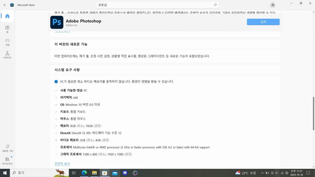 리퍼노트북 구매했습니다. 포토샵, 캡컷을 설치했는데요. 시스템사양이 부족하다고 하네요 이런경우엔 비디오메모리를 높여야하나요? 비디오카드를 업그레이드 해야하는건가요?