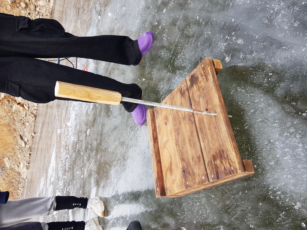 그런데..궁금한게...꽁꽁 얼은 맑은 저수지에 얼음 상태를 보니 아래 사진처럼 투명하여 속이 보이는 부분도 있고