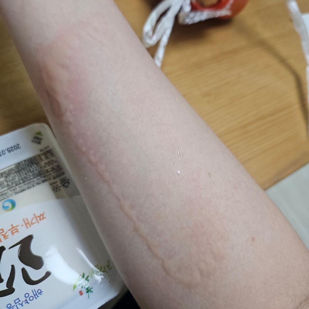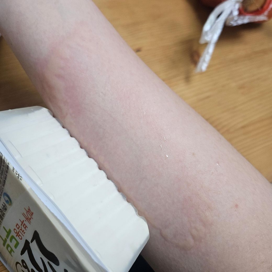 밖에서 두부 한모 사고 팔에 안고 5분정도 걸어서 집에 왔는데 이렇게 피부가 올라왔네요
