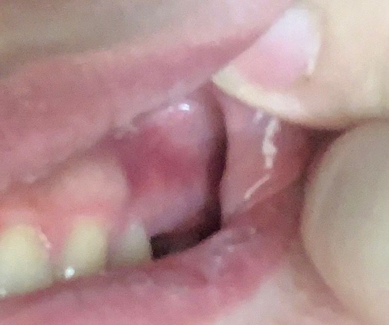 사진으로 봤을 경우에는 정상적인 잇몸의 형태로 보입니다. 하지만 사진이 흐리기 때문에 정확한 확인이 어려워 보입니다.