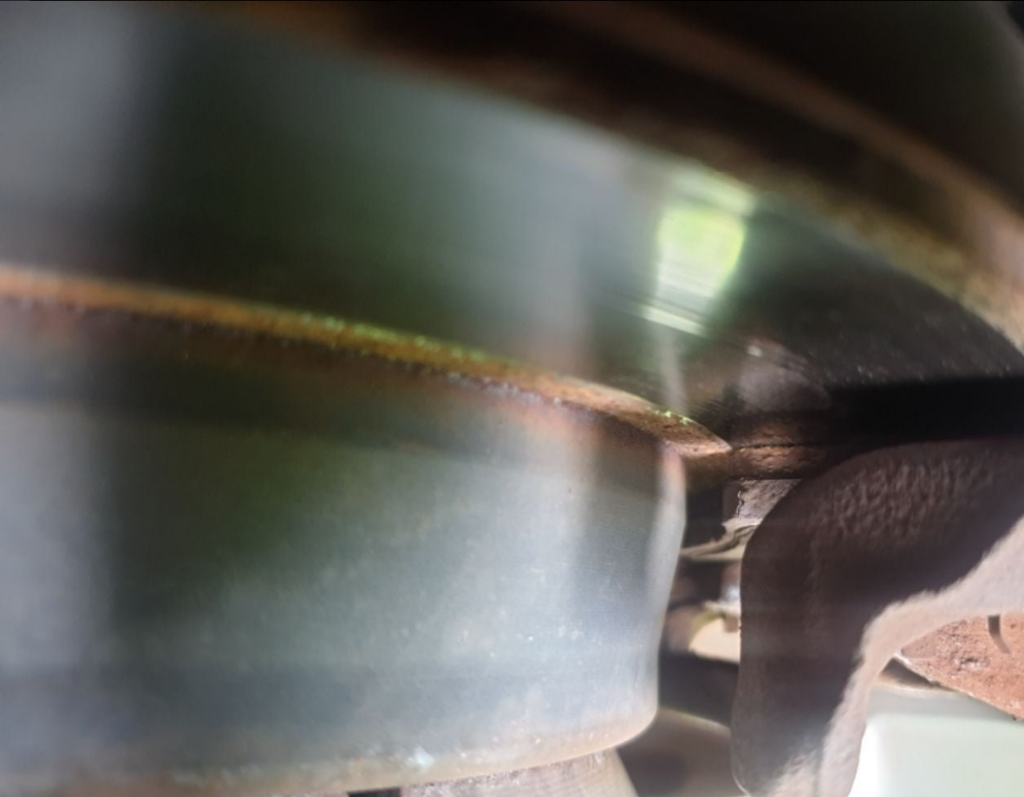 브레이크 패드가 다닳게 되면 끼익하는 쇳소리가 나게 됩니다. 쇠소리가 난다면 브레이크 교환시기가 다됐다는 의미로 보시면 되겠습니다. 사진상으로도 거의 다 닳은것같이 보이네요