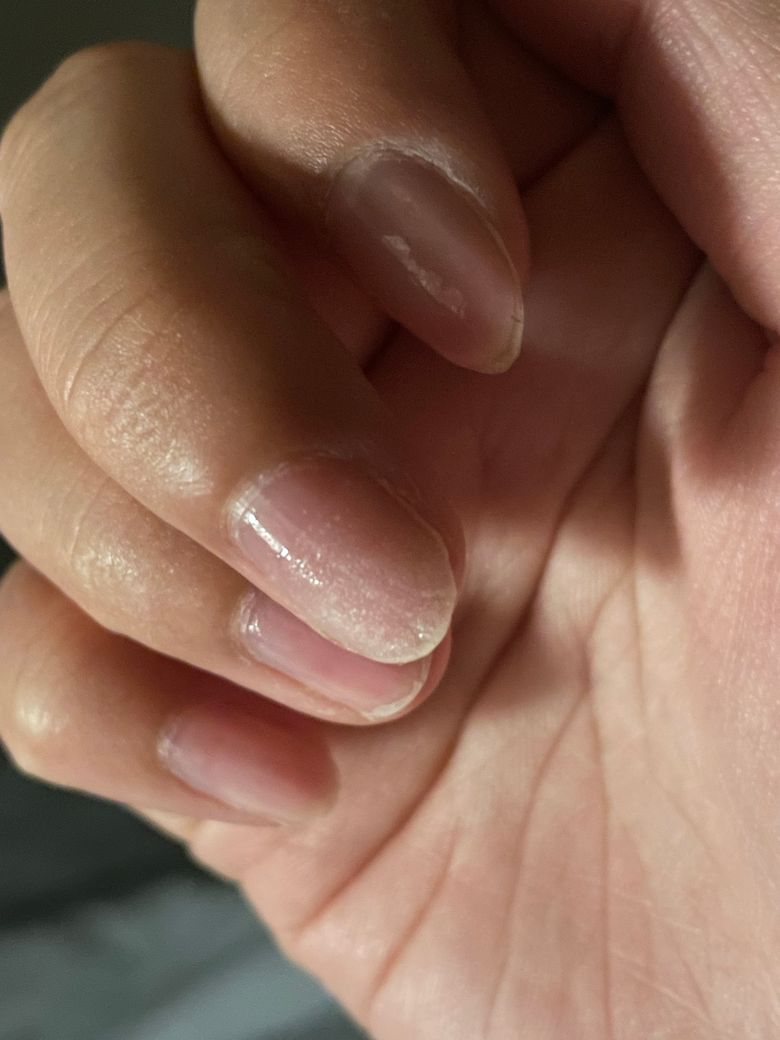 젤네일을 유지하다가 조금 쉬려고 젤 제거 후 세로줄이 생긴걸 알게 되었어요.