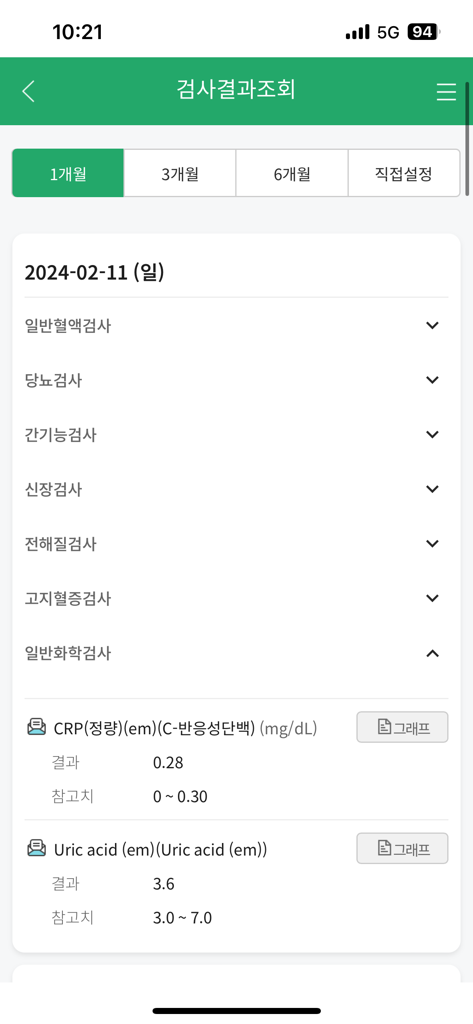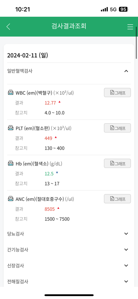 오늘 2/11(일) 피검사결과