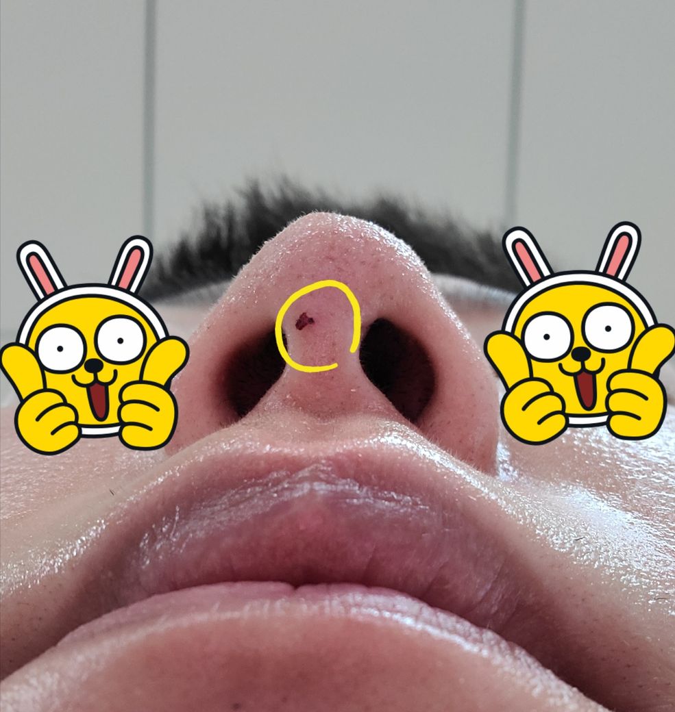 근데 오늘 아침에 자고 일어났는데 코에 피딱지가 생겼네요.