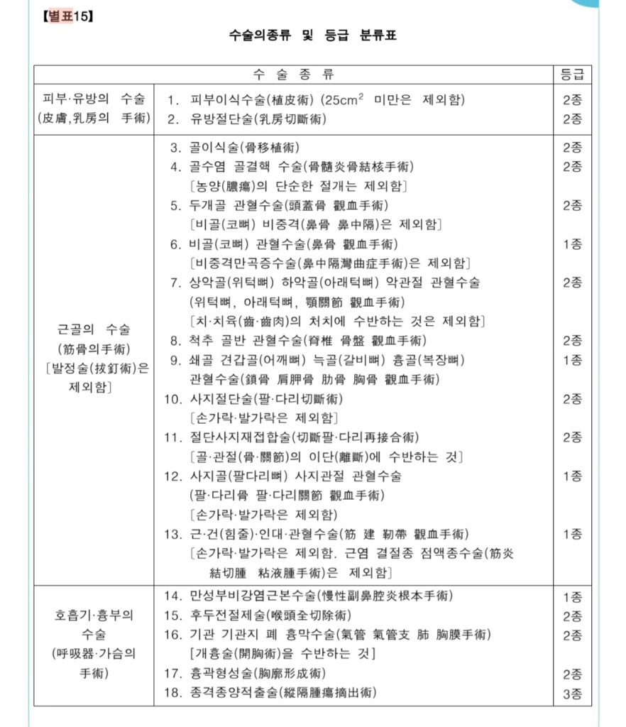 별표15에 있는 내용입니다