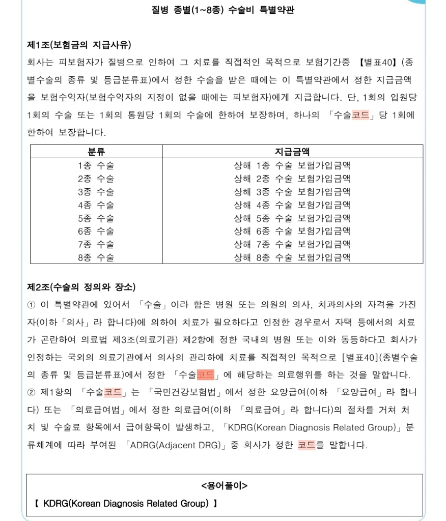 수술비용이란 항목으로 나와있는게 없어서 종별 수술비 약관으로 첨부드립니다.