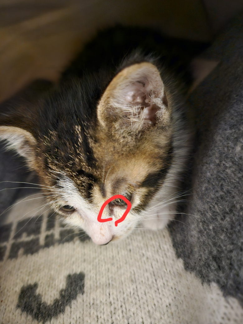 안녕하세요. 새끼길냥이 임시보호하고있는데, 고양이 눈 밑에 난 이 검은건 무엇일까요? 처음엔 눈곱인줄 알았는데 눈곱은 아닌 것 같고 점에 가까운 것 같아서 여쭤봅니다.