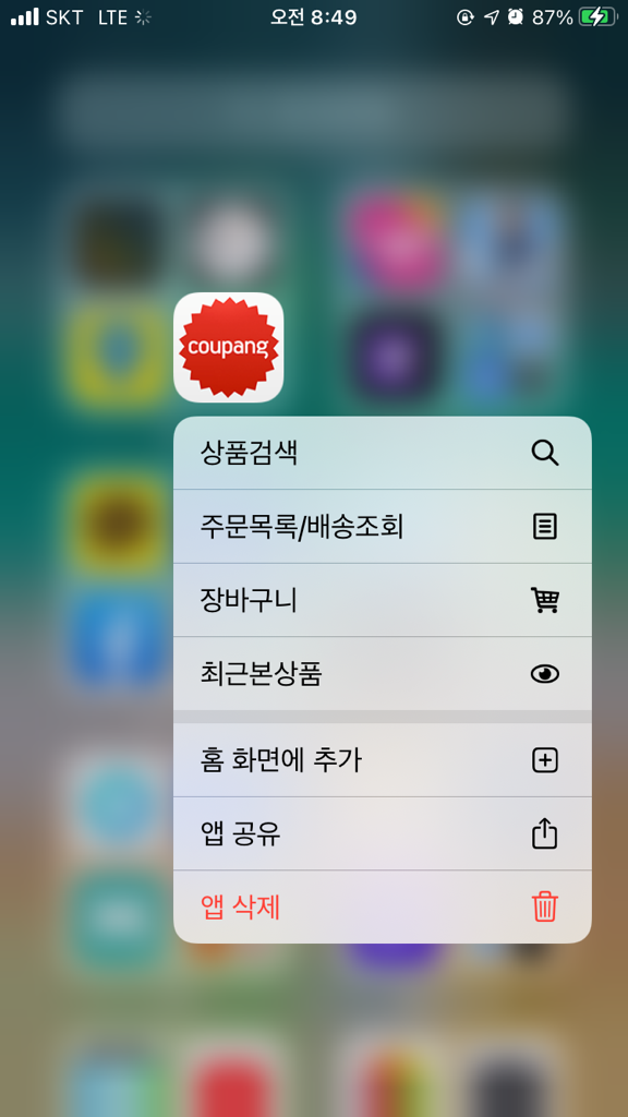 사진과 같이 쿠팡앱으르지웠는데여. 이렇게 찾기에서 나오는이유는 뭔가요??버그인가오!! 아니면 용량을 관리하기 위한 건가요??