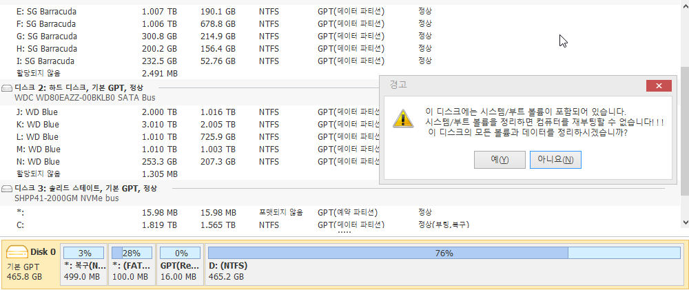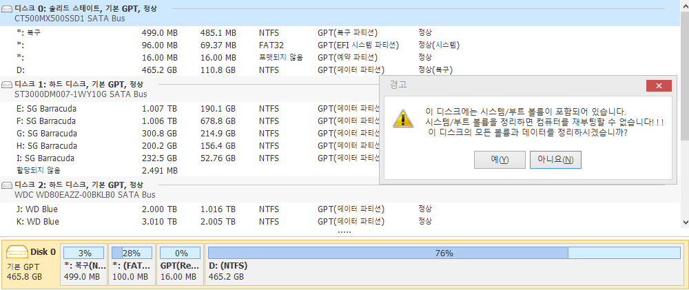 500기가짜리를 포멧할려고 하는데 시스템파티션이 있다고 안되네요