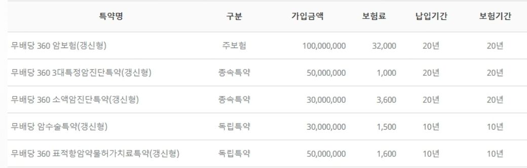 암진단비.유사암진단비.3대특정암진단비 등 보장금액은 큰 편이며 보험료는 저렴한 편입니다.젊은 나이라면 20년 갱신형은 갱신시 보험료가 많이 인상되어 보험료가 다소 비싸더라도 비갱신형을 추천합니다.