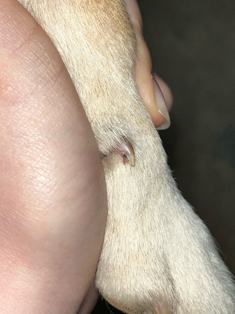 강아지 발톱이 떨어진 자리에서 보이는 빨간 부분은 혈관과 신경이 분포한 속살이 노출된 것이므로 감염 방지를 위해 적절한 소독과 처치가 필요합니다. 강아지가 당장 통증을 느끼지 않더라도 외부 노출로 인해 염증이 발생하거나 추가적인 상처를 입을 위험이 크며 이차 감염이 발생할 경우 주변 조직까지 손상될 수 있습니다. 우선 발을 깨끗한 물이나 소독액으로 닦아낸 후 외부 오염이 되지 않도록 가볍게 붕대를 감아 보호해야 하며 가급적 동물병원에 방문하여 손상 정도를 확인하고 항생제 처방 등 필요한 조치를 받는 것이 안전합니다.