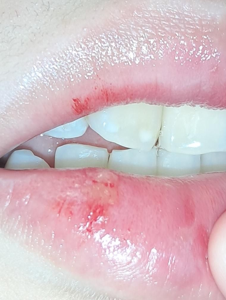입술에 피가 난 상태고 얼굴 씻고 릿밤 바르고 나니까 피가 나더라구요.