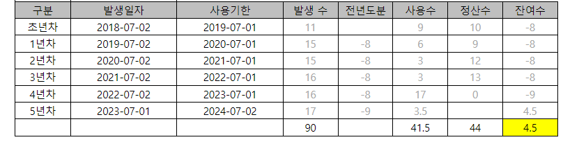 연차수당 산정기준 이게 맞는건가요?