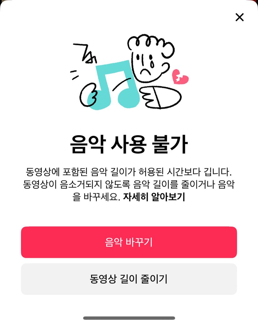 틱톡에서 1분넘는 영상 다른 분들은 잘만 되던데 저만 안되는데 설정에서 뭘 바꿔야하나요? 다른 영상으로도 편집 해보고 화면 녹회로도 해보고 영상 저장해서도 해봤는데 절대 안돼네요
