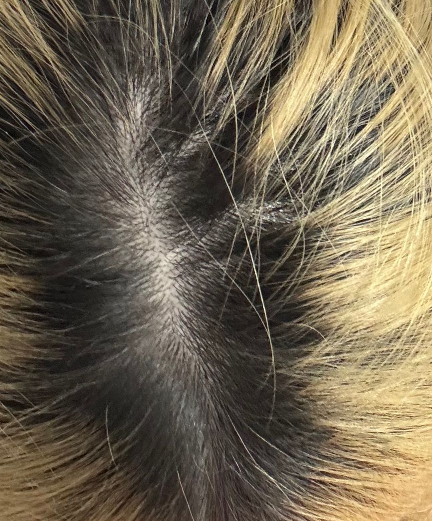 탈색 후 뿌리가 자라서 두피가 유독 하얗게 보이는건지 아니면 탈모인지 잘 모르겠습니다…