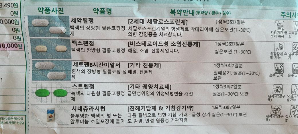 증상 완화시 항생제랑 스트렌정, 시네츄라 시럽만 복용하셔도 됩니다.