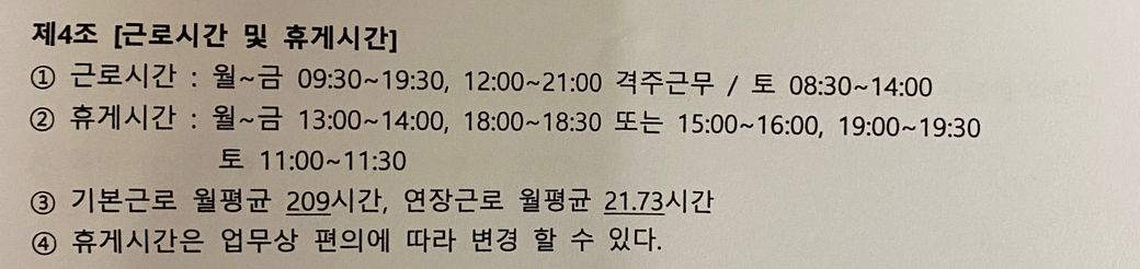 1. 위의 현재의 근로계약서상 근무시간이고