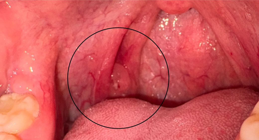 며 칠전 부터 목 통증이 생기고 입냄새라기보단 침에서 냄새가 나는데요. 사진에 표시함 부분이 붓고 흰색 점같은게 저쪽에 두 세개가 있어요. 목구멍쪽에도 있었는데