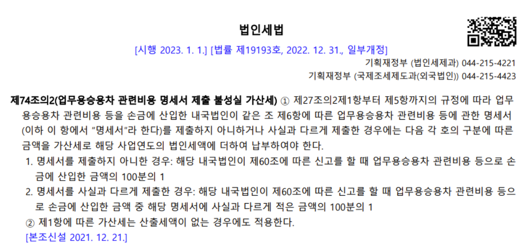 근데 아래 개정사항 보니까 감가상각 한도초과하지 않아도 업무용 승용차 운행일지를 작성해야 하는것 같고..