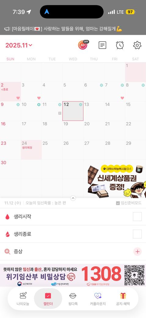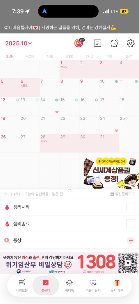 10월 28일 - 11월 2일 생리