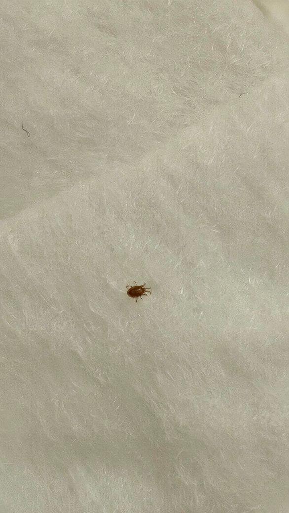 진드기가 맞는 것으로 보입니다. 외부에서 딸려 온 것이면 한마리고 끝일 수 있으나 여러마리가 왔을 수도 있으므로 살충제등으로 방역을 하시기 바랍니다.