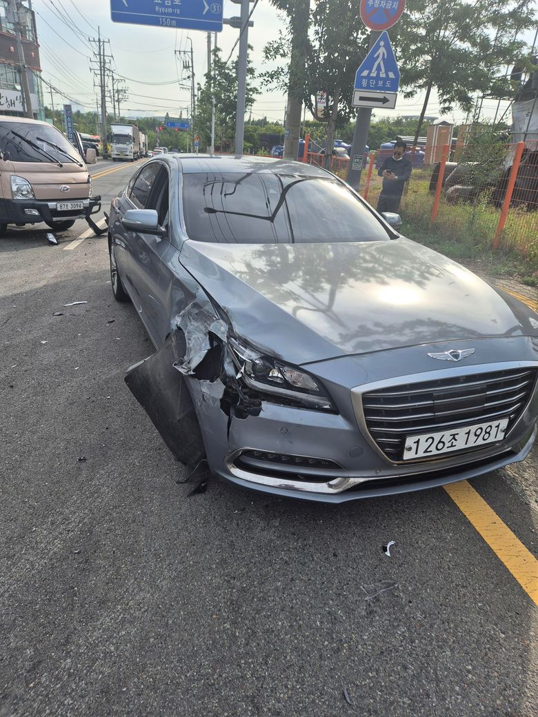 질문내용을 정리해 보면, 상대방이 선행차량, 질문자측이 후행차량으로 진행중,