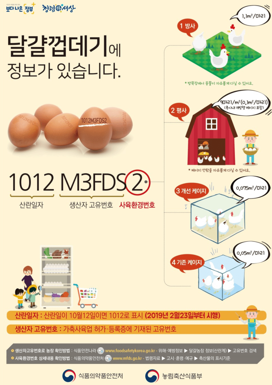 계란 사육환경 번호 표시 방법 참고하셔서 좀 더 나은 환경에서 자란 닭이