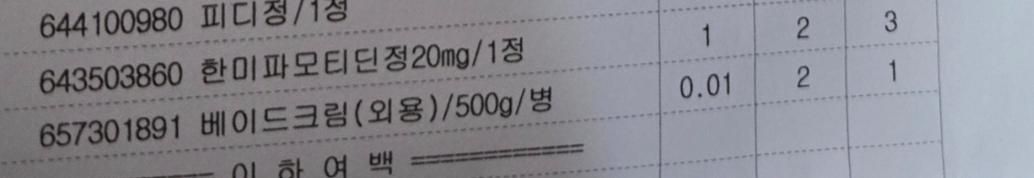처방전 상으로는 500g 의 베이드크림을 0.01x2x1 용량으로 받도록 나와서