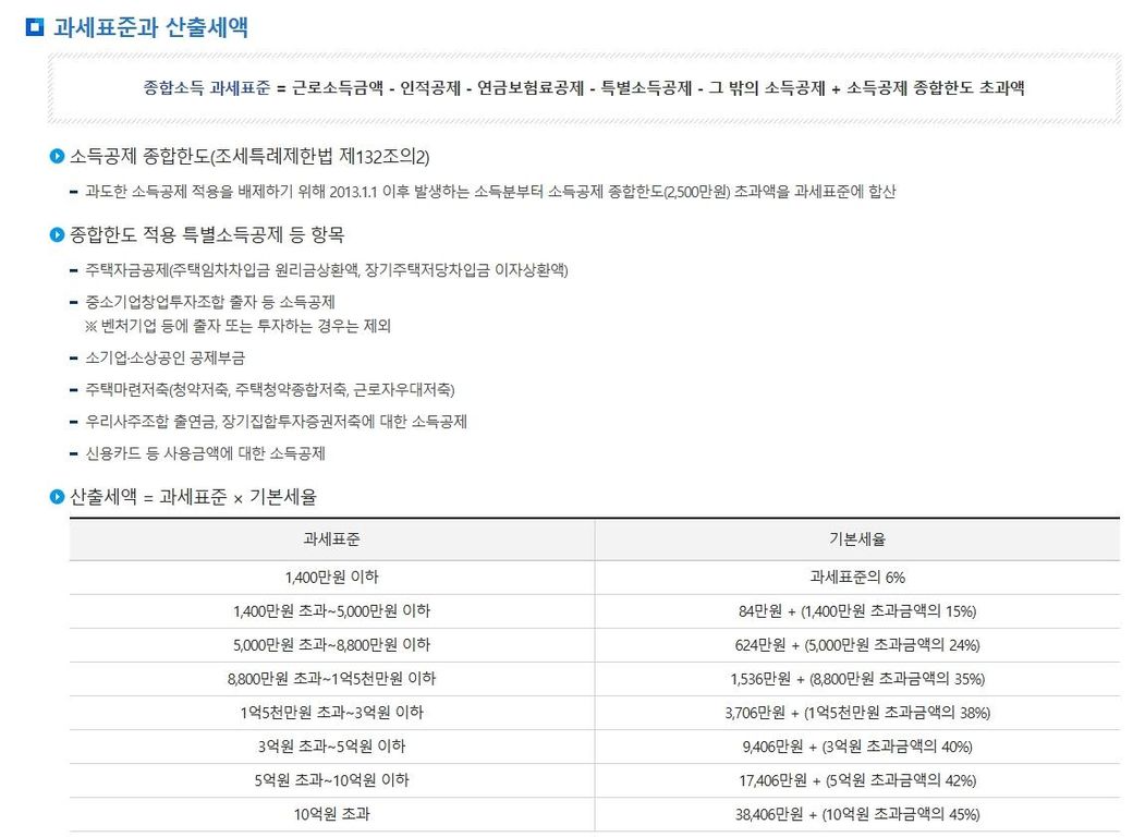 회사에 재직중인 근로자라면 회사에서 다음연도 1월에 연말정산을 합니다. 퇴사자라면 다음연도 5월에 종합소득세 신고를 하셔야 하며 첨부하신 사진의 종합소득세율이 적용됩니다. 개인의 소득세율은 모두 동일합니다.