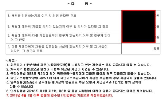 3번은 다른 채권자가 채권압류를 걸어놓은 금액인가요?
