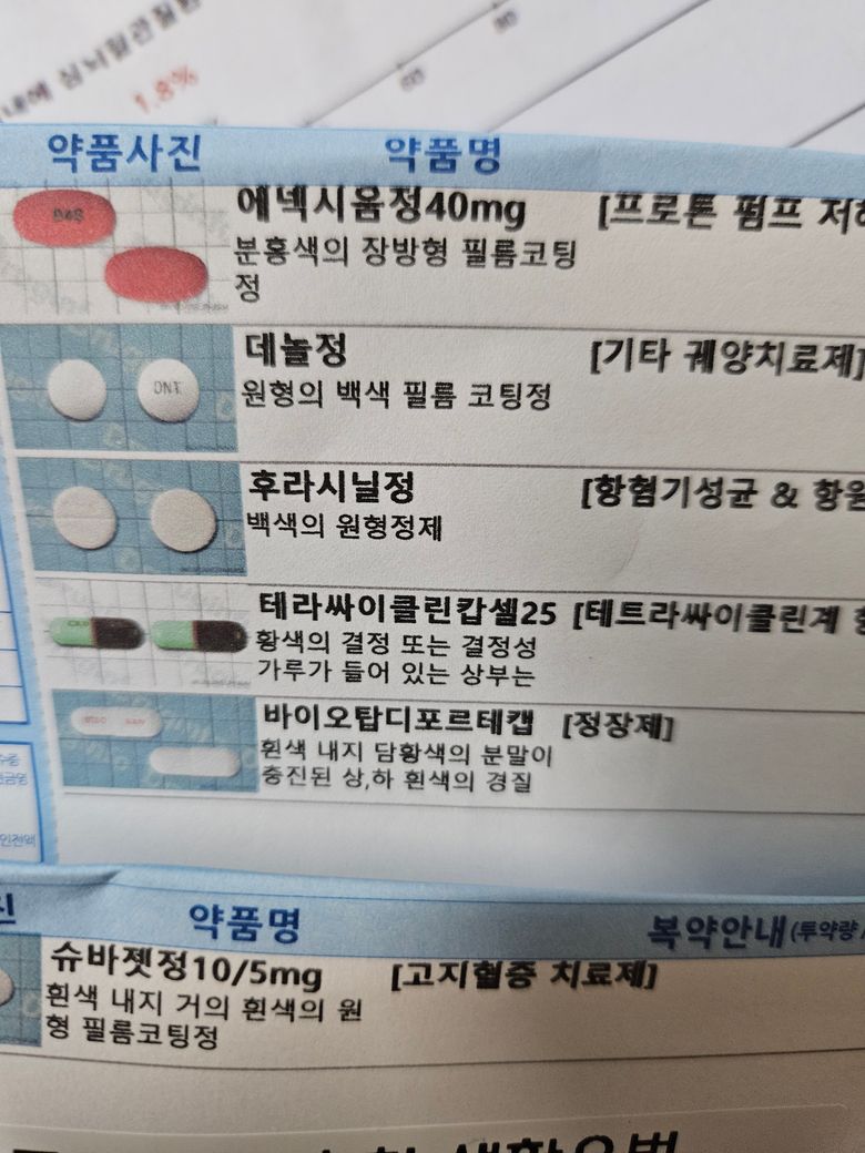 2차 제균제약과 고지혈증 약처방받았어요