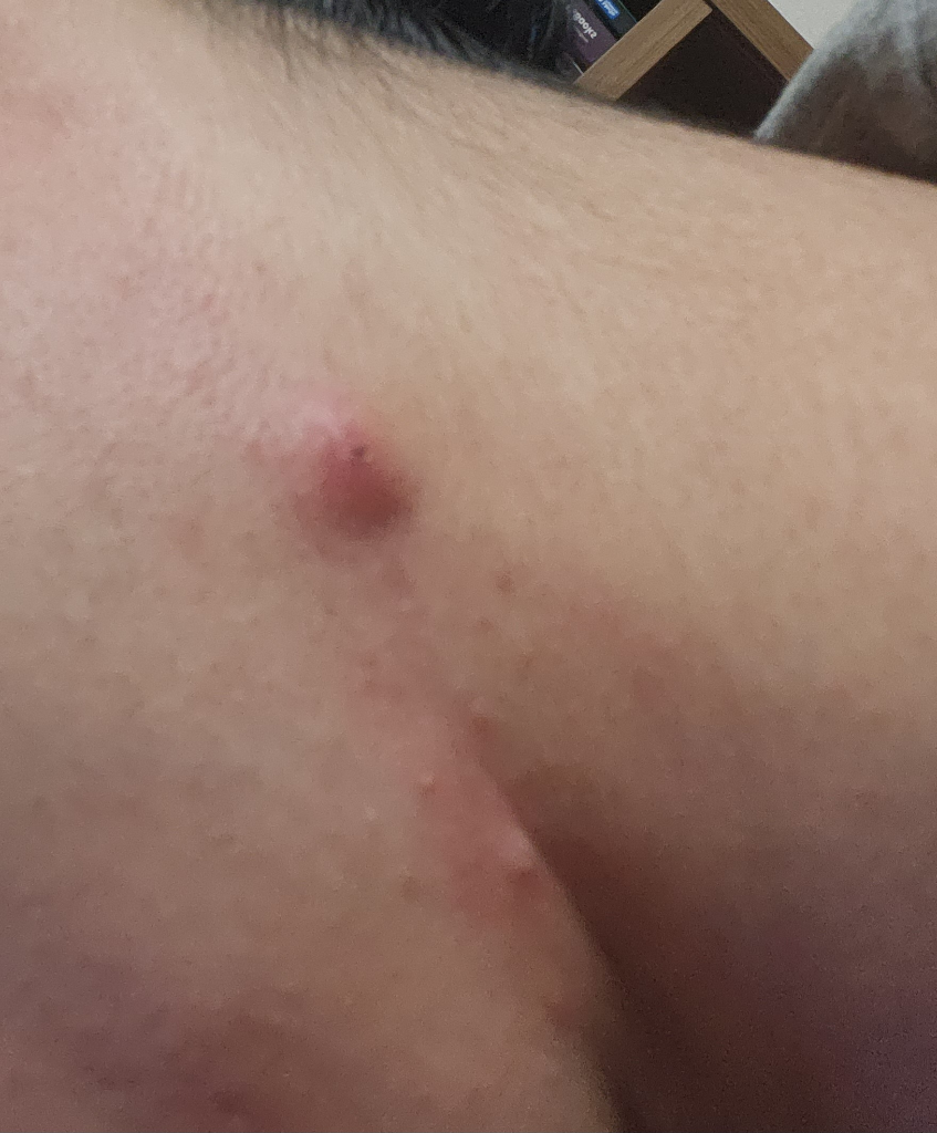 피부에 난것은 여드름같은 종기입니다.