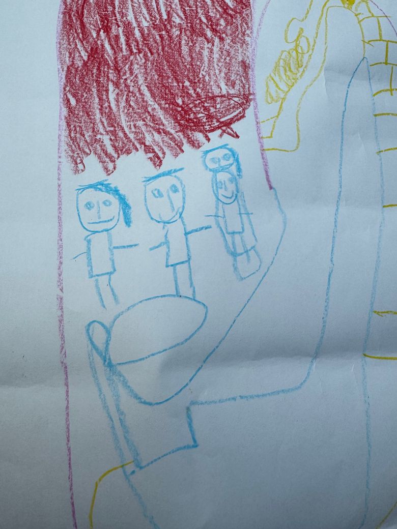 아이 자신을 먼저 그리고 부모가 동생을 안은 모습은 자기 존재를 확실히 드러내고 싶은 욕구로 볼 수 있어요