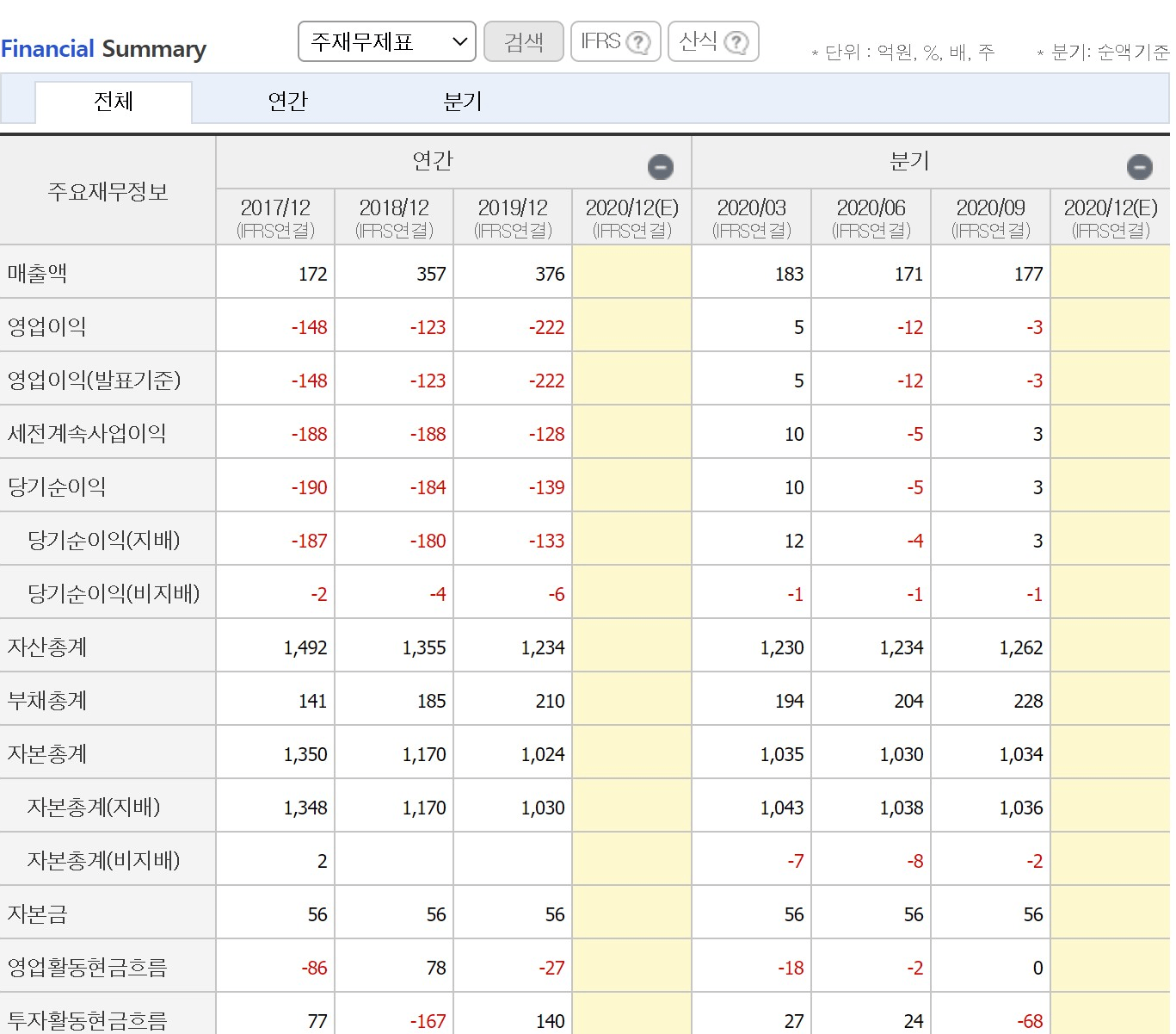 말씀해주신 회사의 재무를 가져와봤는데 우선 매출액이 엄청나게 고성장하고 적자도 눈에 띄게 줄어드는 모습을 볼 수가 있네요.