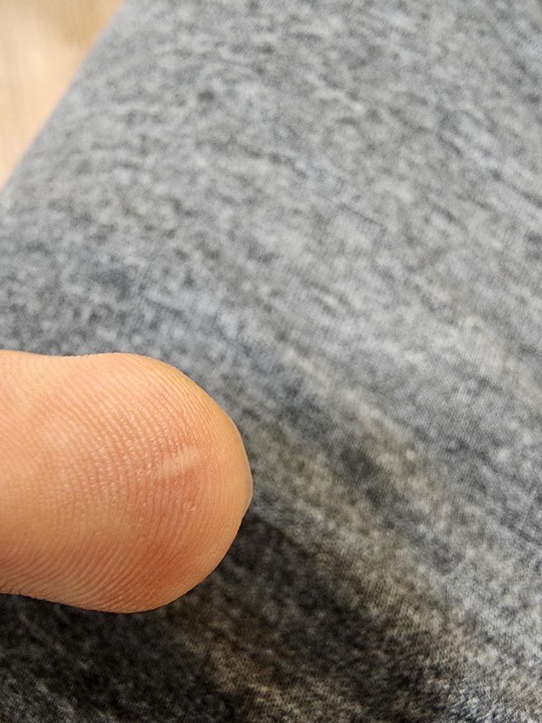 납땜하다가 인두기로 인해 손가락 끝 작은 부위에 물집 같은게 잡혔습니다.