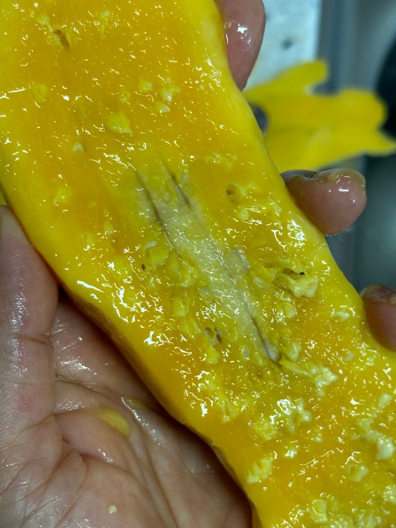 망고 시킨 거 와서 먹으려는데 씨앗부분만 이렇게 거친면? 으로 돼있어요 먹어도 될까요? 저 부분만 그렇고 나머지는 매끈해요 냄새도 괜찮고 상태도 좋아요
