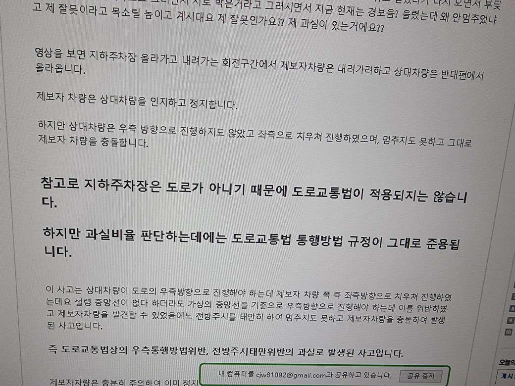 지하주차장 사고 중앙선 침범 직진 차 와 좌회전 차 사고비율?