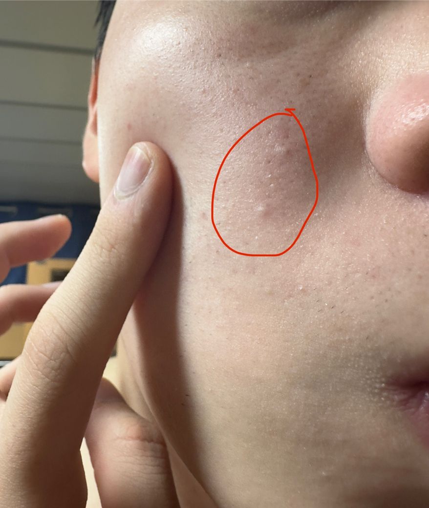 2. 나비존 밑에 흰색(피지 덩어리?)가 딱딱하게 박혀있는거 발견, 짜려고 해도 모공구멍도 안보임