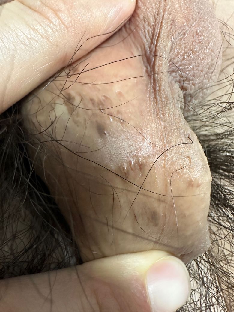 음경 부근에 갈색 반점과 좁쌀 모양이 관찰되는데 이게 뭔가요… 걱정되네요…ㅜㅜㅜㅜ